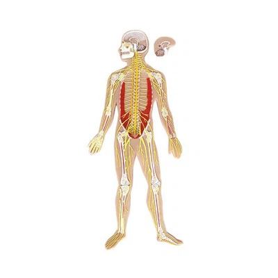 Mehki silikonski model živčnega sistema prikazuje osrednji živčni sistem možganov in hrbtenjače, periferni živec, hrbtenični živec in druge strukture, vključno s hrbteničnimi živci, ki potekajo od središča do vseh delov telesa (radialni živec bra-chial pleksusa, ulnarni živec , mediani živec, ledveni pleksus femoralni živec in sakralni pleksus ishiatični živec itd.). |